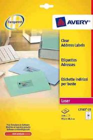 AVERY Etiquetas laser Quickpeel Caja 25 hojas 350 ud 99,1x38,1 Transparentes L7563-25